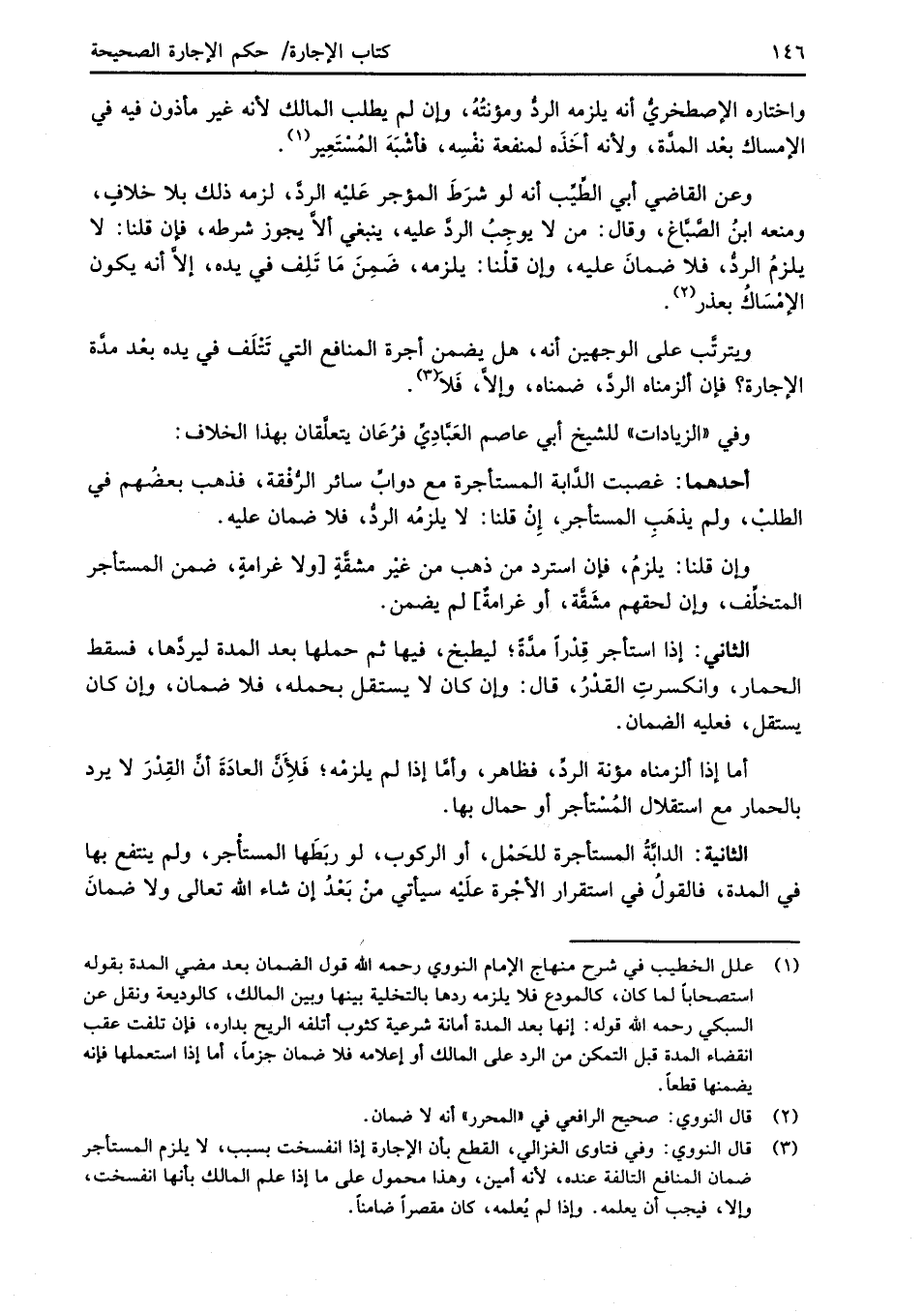 (¬3) قال النووي: وفي فتاوى الغزالي، القطع بأن الإجارة إذا انفسخت بسبب، لا يلزم المستأجر ضمان المنافع التالفة عنده, لأنه أمين، وهذا محمول على ما إذا علم المالك بأنها انفسخت، وإلا، فيجب أن يعلمه. وإذا لم يُعلمه، كان مقصراً ضامناً.