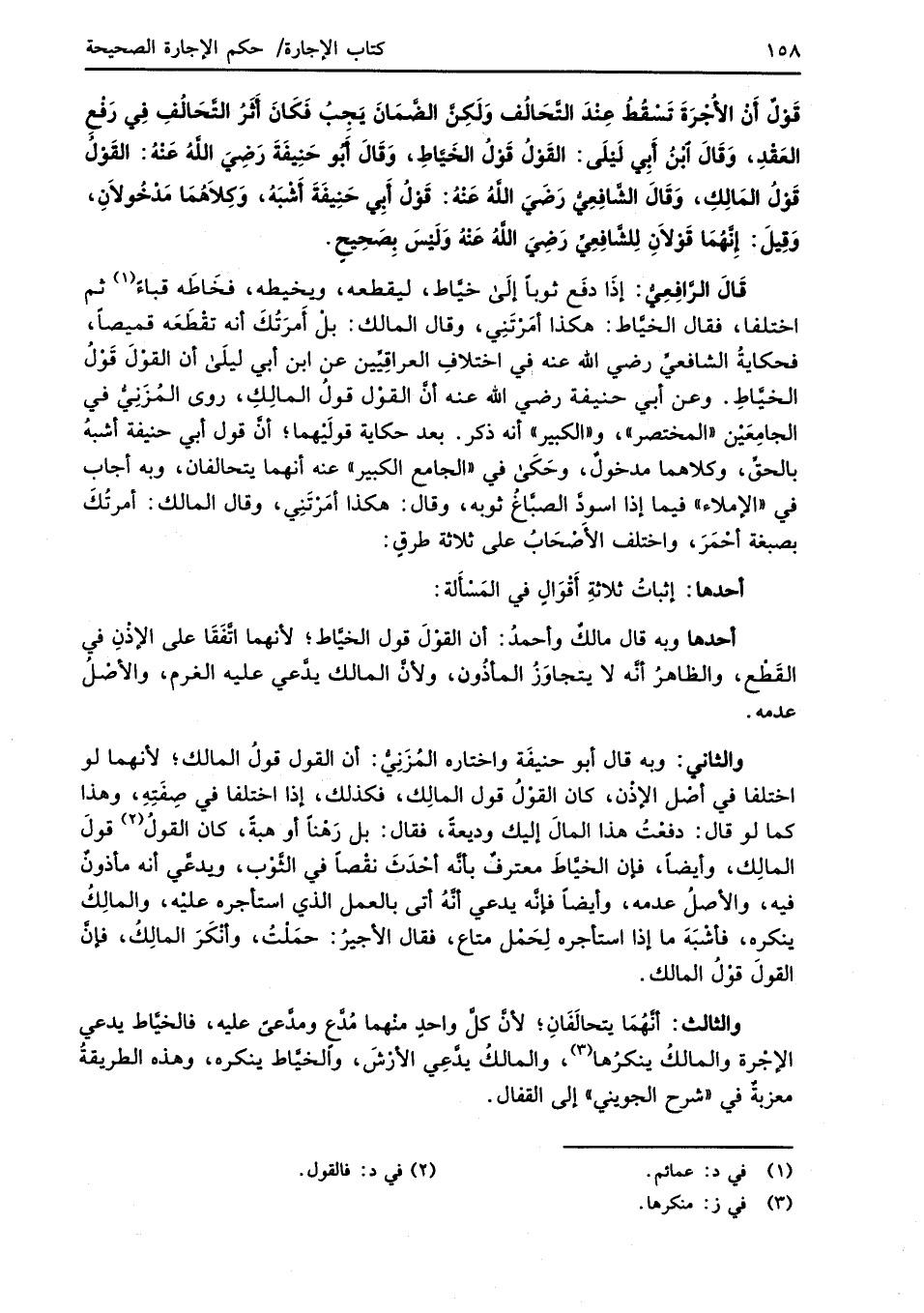 أحدها: إثباتُ ثلاثةِ أَقْوَالٍ في المَسْأَلة: