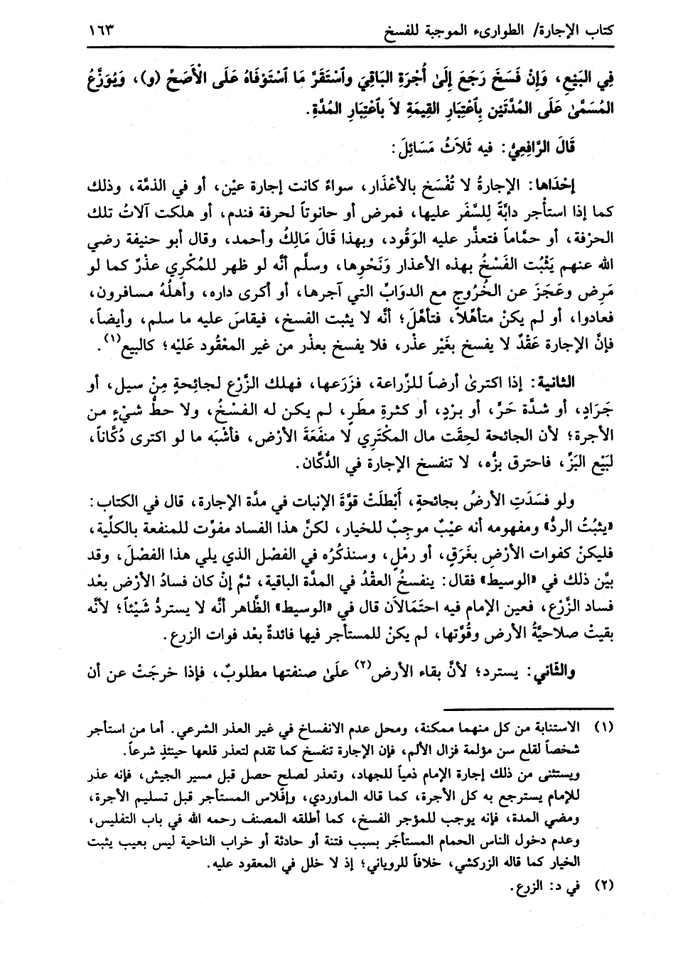 قَالَ الرَّافِعِيُّ: فيه ثَلاَثُ مَسَائِلَ: