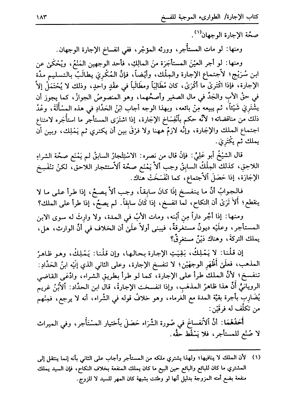 (¬1) لأن الملك لا ينافيها؛ ولهذا بشتري ملكه من المستأجر وأجاب على الثاني بأنه إنما ينتقل إلى المشتري ماوإن للبائع والبائع حين البيع ما كان يملك المنفعة بخلاف النكاح، فإن السيد يملك منفعة بضع أمته المزوجة بدليل أنها لو وطئت بشبهة كان المهر للسيد لا للزوج.