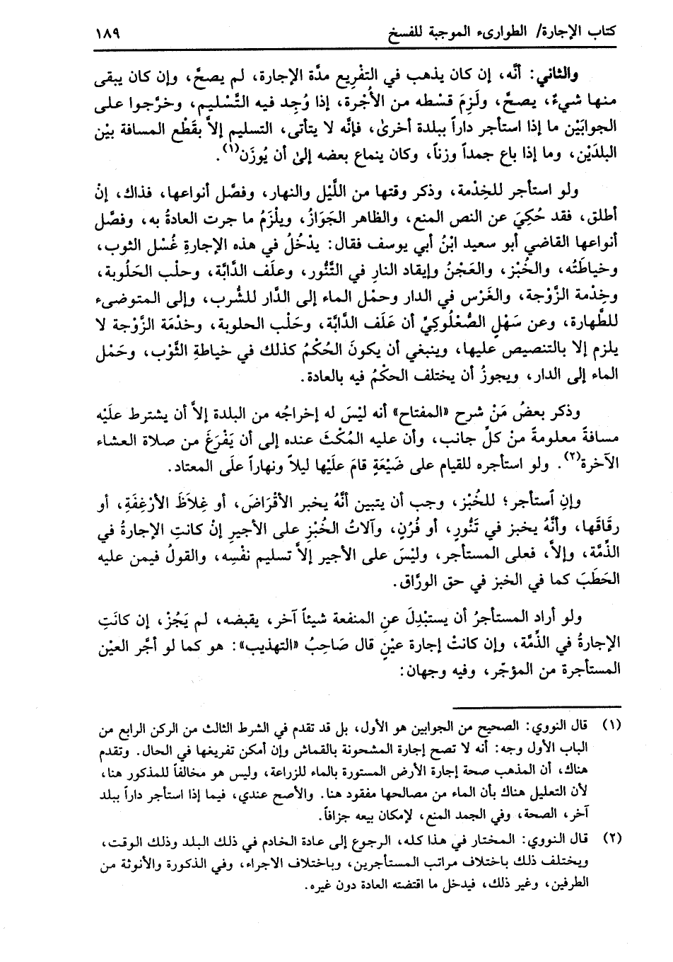 (¬2) قال النووي: المختار في هذا كله، الرجوع إلى عادة الخادم في ذلك البلد وذلك الوقت، ويختلف ذلك باختلاف مراتب المستأجرين، وباختلاف الاجراء، وفي الذكورة والأنوثة من الطرفين، وغير ذلك، فيدخل ما اقتضته العادة دون غيره.