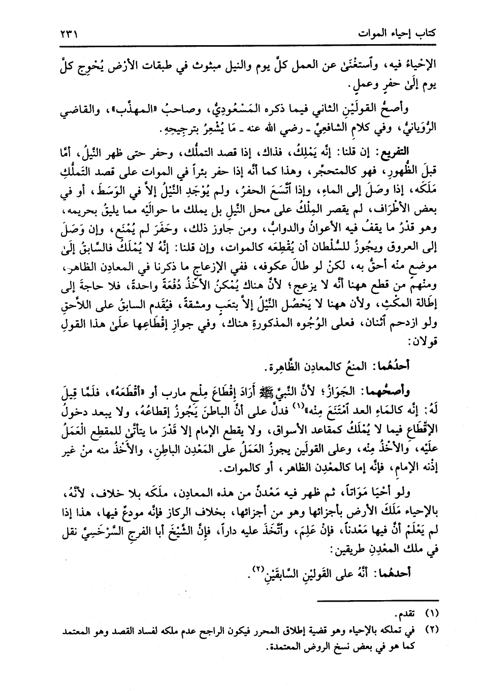 أحدُهُما: المنعُ كالمعادِن الظَّاهِرة.