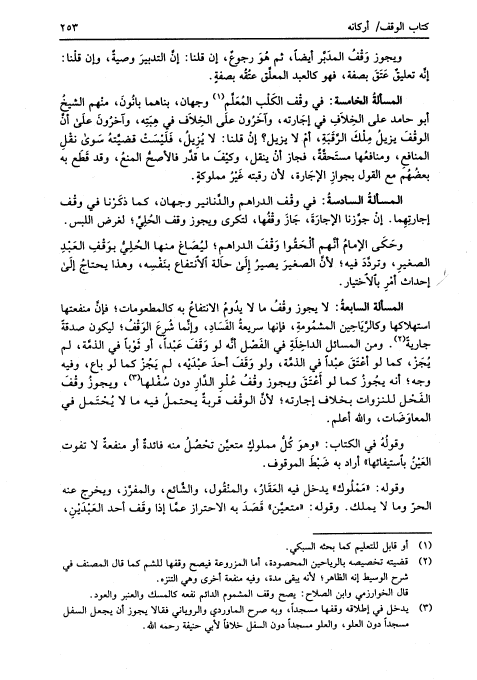 (¬3) يدخل في إطلاقه وقفها مسجداً، وبه صرح الماوردي والروياني فقالا يجوز أن يجعل السفل مسجداً دون العلو، والعلو مسجداً دون السفل خلافاً لأبي حنيفة رحمه الله.