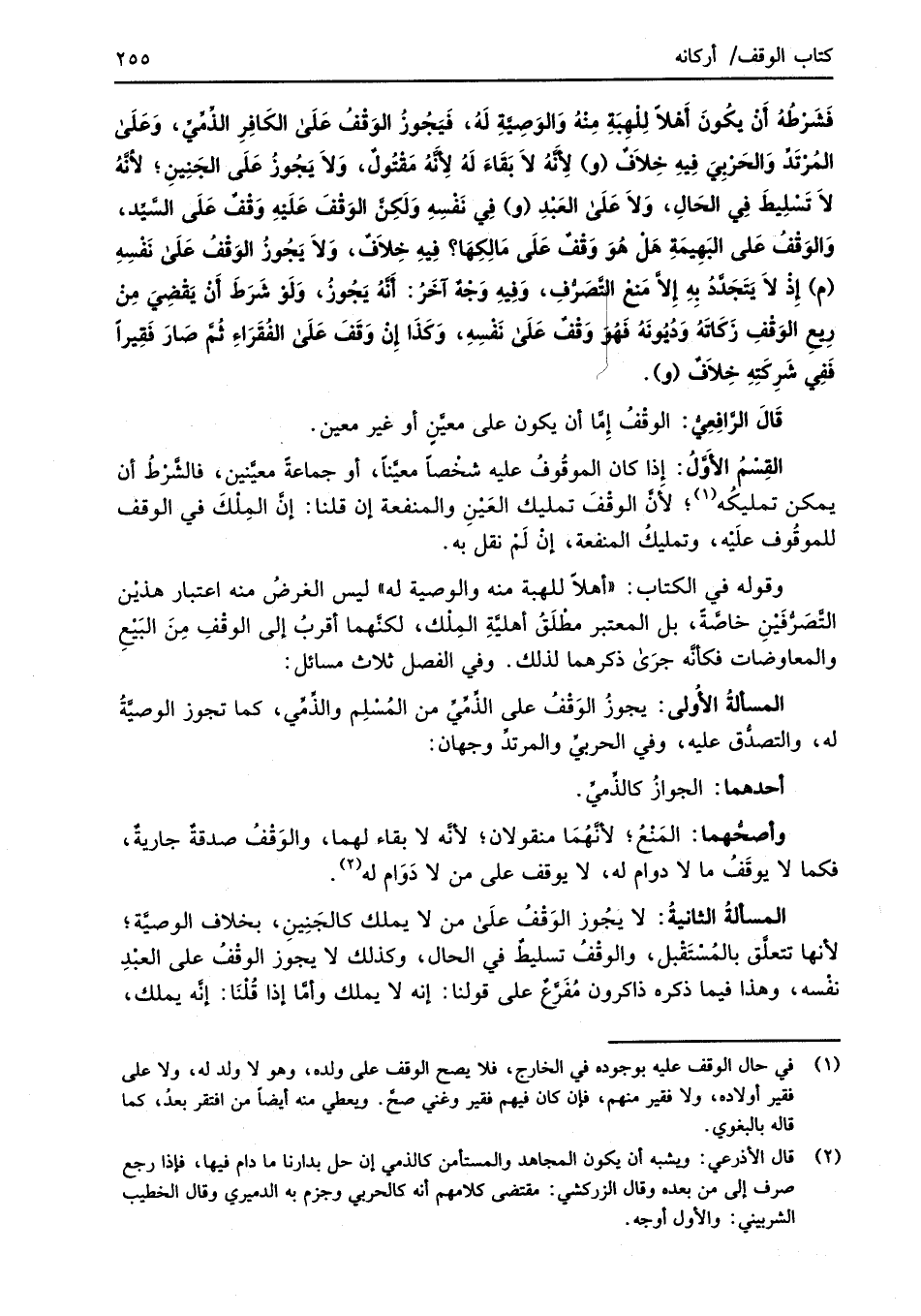 وقوله في الكتاب: "أهلاً للهبة منه والوصية له" ليس الغرضُ منه اعتبار هذيْن التَّصَرُّفَيْنِ خاصَّةً، بل المعتبر مطْلَقُ أهليَّةِ المِلْك، لكنَّهما أقربُ إلى الوقْفِ مِنَ البَيْعِ والمعاوضات فكأنَّه جرَى ذكرهما لذلك. وفي الفصل ثلاث مسائل: