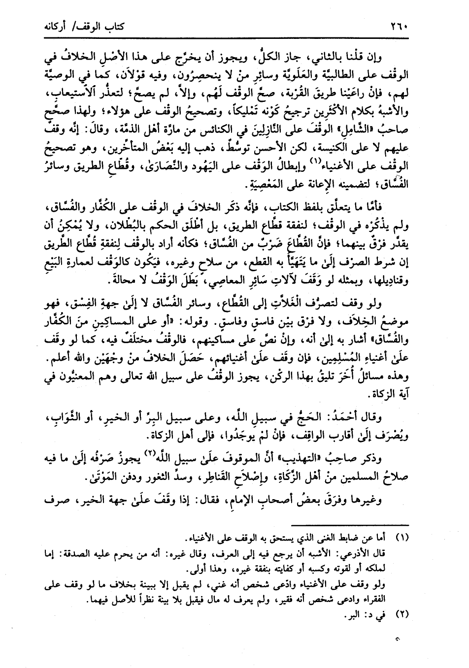 ولو وقف لتصرُّف الْغَلاَّتِ إلى القُطَّاع، وسائر الفُسَّاق لا إلَى جهةِ الفِسْق، فهو موضعُ الخِلاَف، ولا فرْق بيْن فاسقٍ وفاسقٍ. وقوله: "أو على المساكِينِ منَ الكُفَّار والفُسَّاق" أشار به إلى أنه، وإنْ نصَّ على مساكينهم، فالوقْفُ مختلَفٌ فيه، كما لو وقَف عَلَى أغنياءِ المُسْلِمِين، فإن وقَف عَلَى أغنيائهم، حَصَلَ الخلافُ منْ وجْهَيْن والله أعلم. وهذه مسائلُ أُخَرَ تليقُ بهذا الركْن، يجوز الوقْفُ على سبيل الله تعالى وهم المعنيُّون في آية الزكاة.