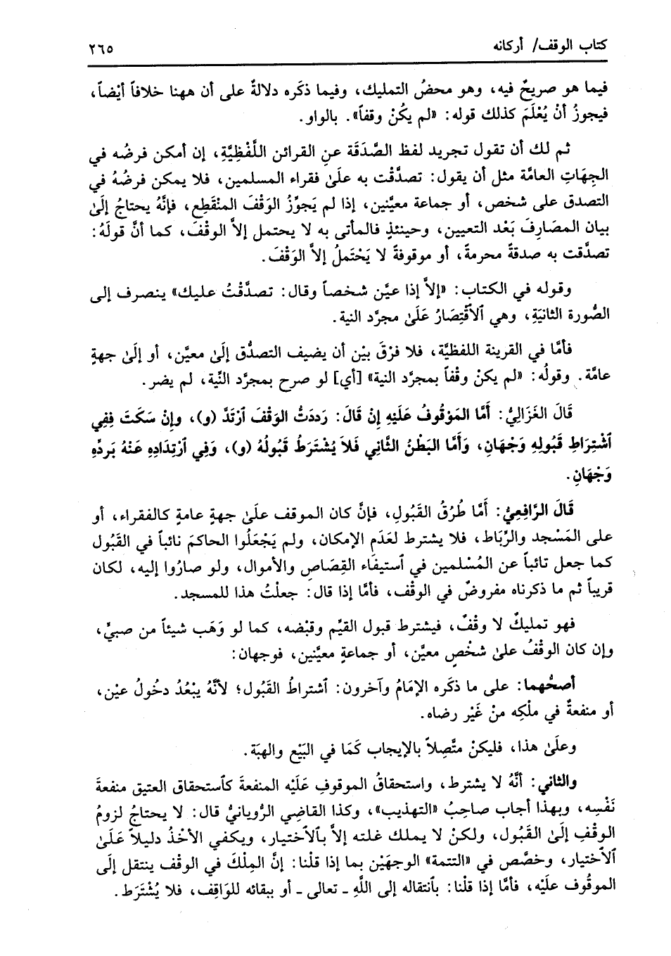 فأمَّا في القرينة اللفظيَّة، فلا فرْقَ بيْن أن يضيف التصدُّق إلَى معيَّن، أو إلَى جهةٍ عامَّة. وقولُه: "لم يكنْ وقْفاً بمجرَّد النية" [أي] لو صرح بمجرَّد النِّية، لم يضر.