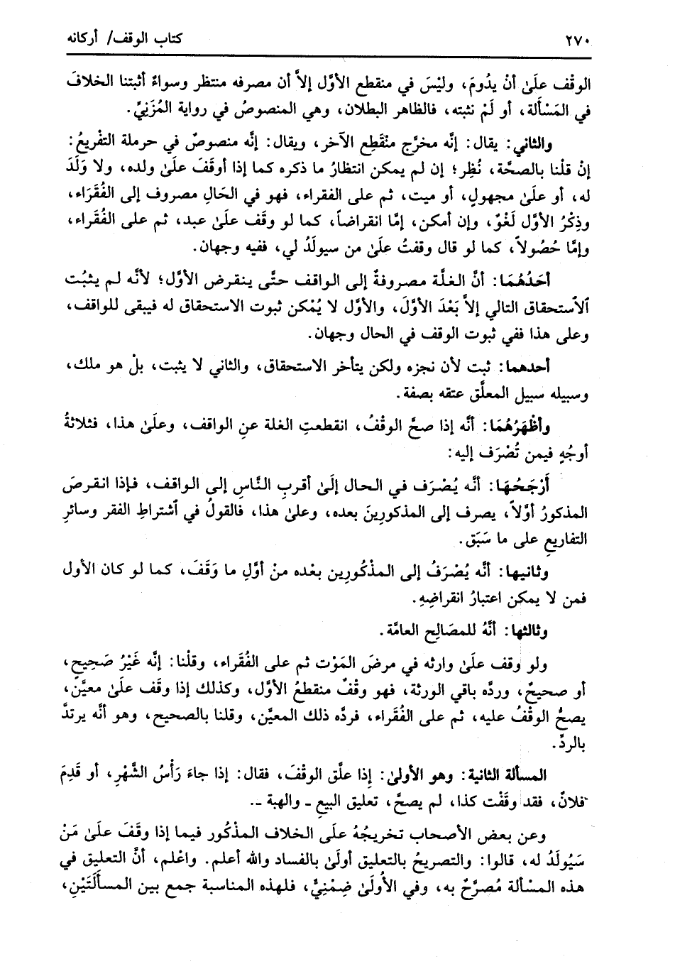 الوقْف عَلَى أنْ يدُومَ، وليْسَ في منقطع الأوَّل إلاَّ أن مصرفه منتظر وسواءٌ أثبتنا الخلافَ في المَسْأَلة، أو لَمْ نثبته، فالظاهر البطلان، وهي المنصوصُ في رواية المُزَنِيِّ.