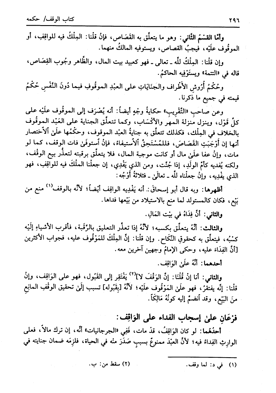 فرْعَانِ على إسجاب الفداء على الوَاقِف:
