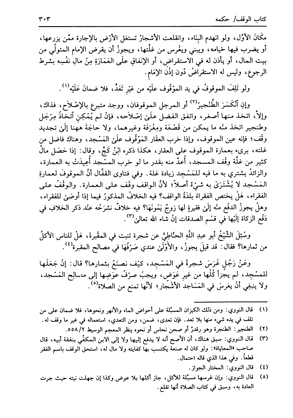 (¬1) قال النووي: ومن ذلك الكيزان المسبَّلة على أحواض الماء والأنهر ونحوها، فلا ضمان على من تلف في يده شيء منها بلا تعد. فإن تعدى، ضمن، ومن التعدي، استعماله في غير ما وقف له.