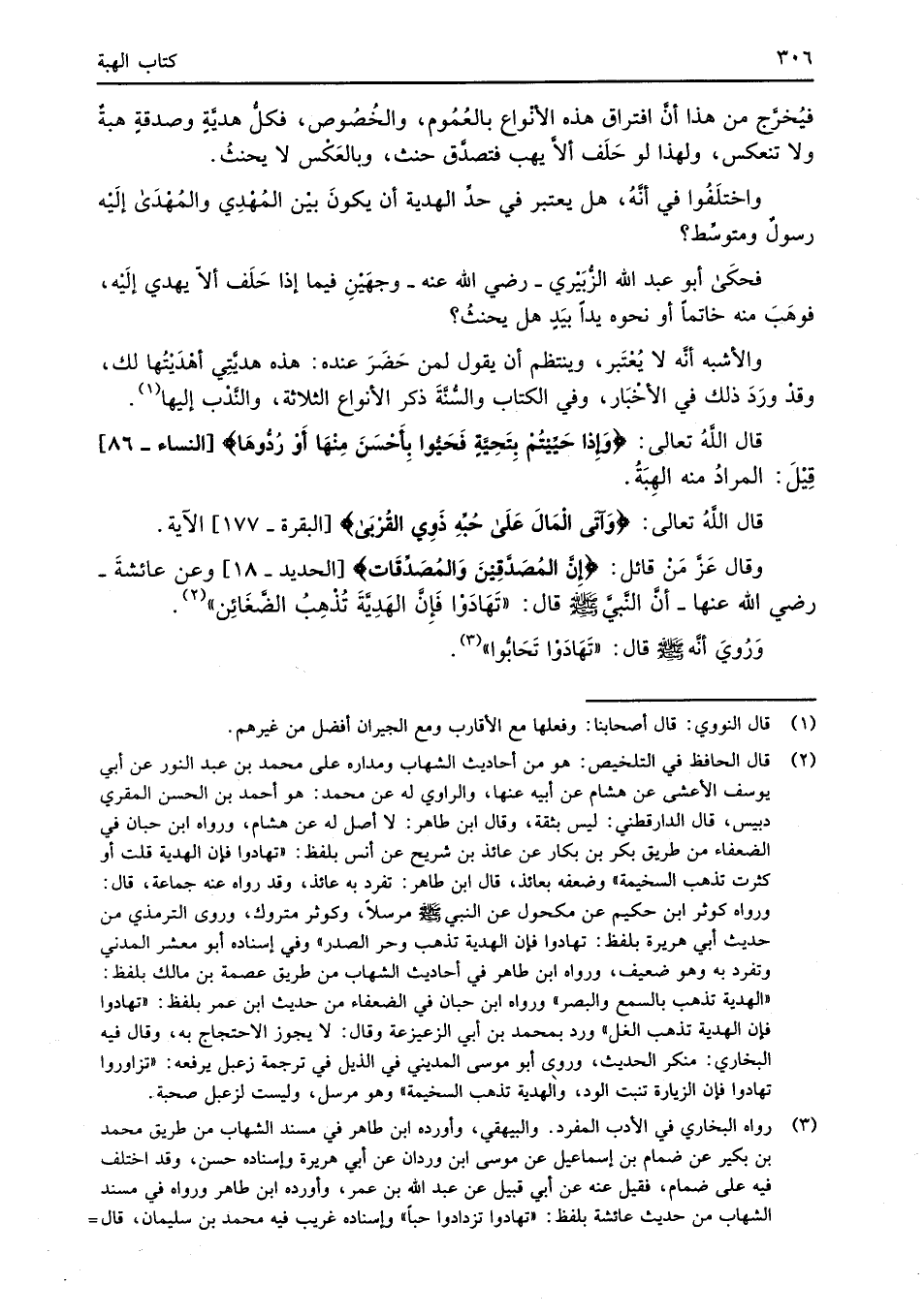قال اللهُ تعالى: {وَإِذَا حُيِّيتُمْ بِتَحِيَّةٍ فَحَيُّوا بِأَحْسَنَ مِنْهَا أَوْ رُدُّوهَا} [النساء: 86] قِيْلَ: المرادُ منه الهِبَةُ.