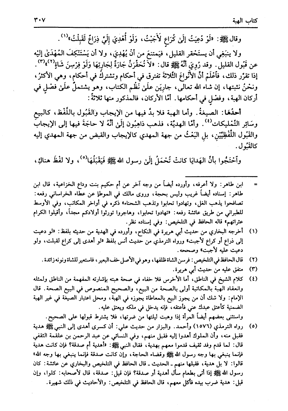 (¬5) رواه الترمذي (1576) وأحمد. والبزار من حديث علي: أن كسرى أهدى إلى النبي -صلى الله عليه وسلم- هدية فقبل منه، وأن الملوك أهدوا إليه فقبل منهم، وفي النسائي عن عبد الرحمن بن علقمة الثقفي قال: لما قدم وقد ثقيف قدموا معهم بهدية، فقال النبي -صلى الله عليه وسلم-: "أهدية أم صدقة؟ فإن كانت هدية فإنما ينبغي بها وجه رسول الله -صلى الله عليه وسلم- وقضاء الحاجة، وإن كانت صدقة فإنما ينبغي بها وجه الله" قالوا: لا بل هدية، فقبلها منهم -الحديث- قال الحافظ في التلخيص والبخاري عن عائشة: كان رسول الله -صلى الله عليه وسلم- إذا أتى بطعام سأل أهدية أو صدقة؟ فإن قيل: صدقة، قال لأصحابه: كلوا، وإن قيل: هدية ضرب بيده فأكل معهم، قال الحافظ في التلخيص: والأحاديث في ذلك شهيرة.