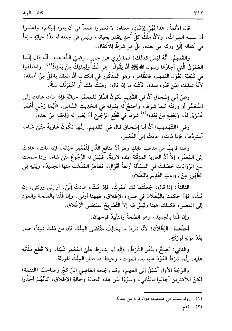 قال الأئمةُ: هذا نَهْيُ إِرْشَادٍ معناه: لا تعمروا طمعاً في أن يعود إليكم، واعلموا أن سبيله المِيرَاثُ، ولأنَّ مِلْكَ كلِّ أَحَدٍ يتقدر بحياته، وليس في جعله له مدَّةَ حياتِهِ مانِعاً في انتقاله إلَى ورثته من بعده، بلْ هو شرطٌ لِلانتقالِ.