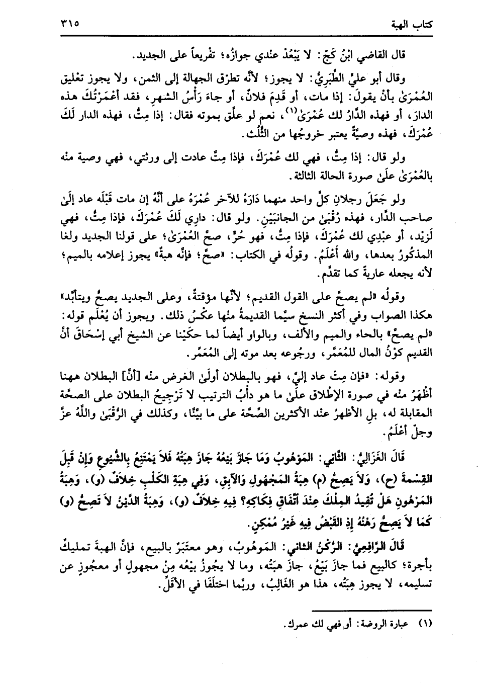 (¬1) عبارة الروضة: أو فهي لك عمرك.