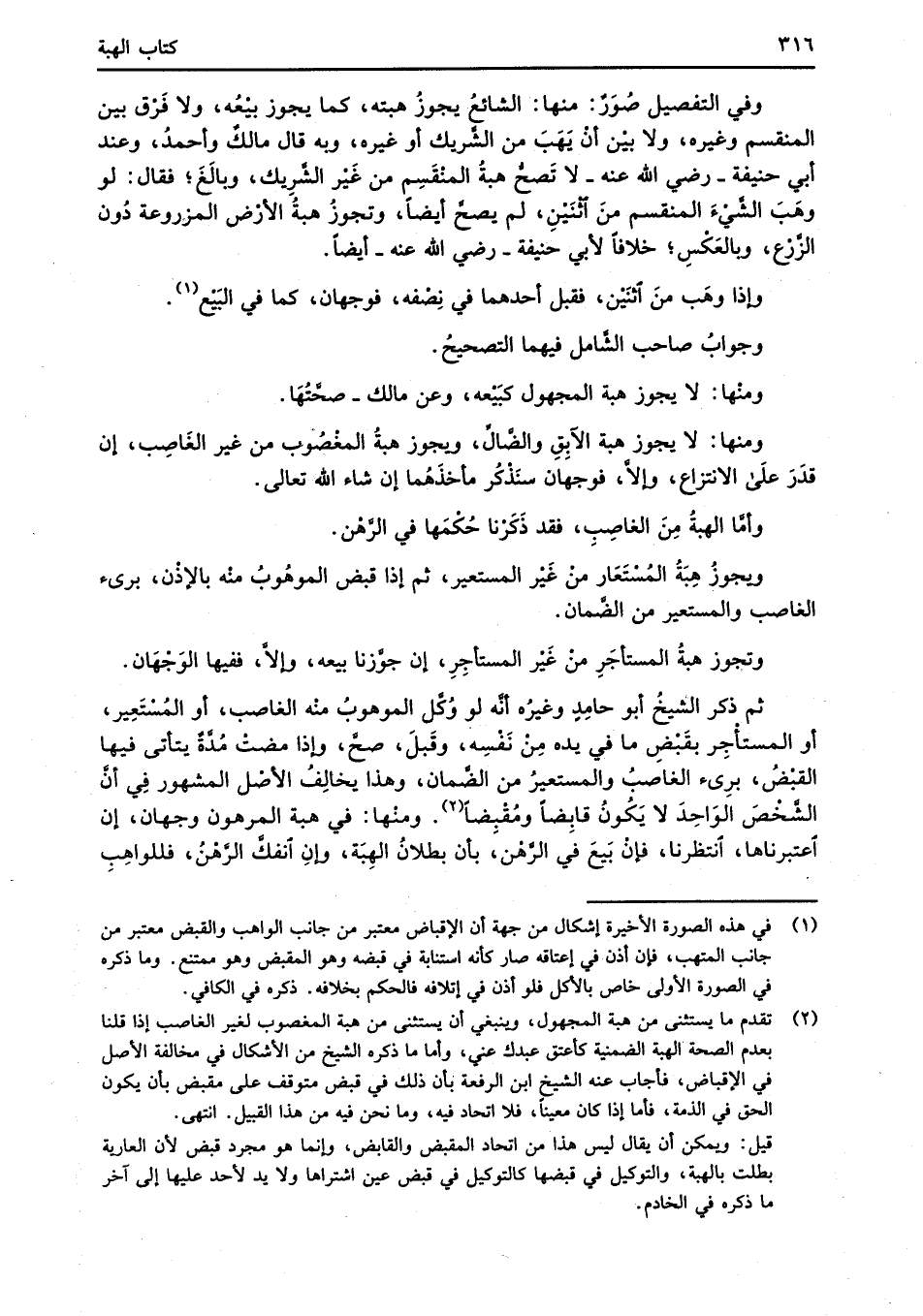 وفي التفصيل صُوَرٌ: منها: الشائعُ يجوزُ هبته، كما يجوز بيْعُه، ولا فَرْق بين المنقسم وغيره، ولا بيْن أنْ يَهَبَ من الشَّريك أو غيره، وبه قال مالكٌ وأحمدُ، وعند أبي حنيفة -رضي الله عنه- لا تَصحُّ هبةُ المنْقَسِم من غَيْر الشَّرِيك، وبالَغَ؛ فقال: لو وهَبَ الشَّيْءَ المنقسم منَ اثْنَيْنِ، لم يصحَّ أيضاً، وتجوزُ هبةُ الأرْض المزروعة دُون الزَّرْع، وبالعَكْسِ؛ خلافاً لأبي حنيفة -رضي الله عنه- أيضاً.