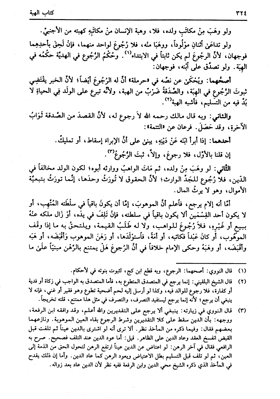(¬3) قال النووي في زيارته: ينبغي ألا يرجع على التقديرين والله أعلم، وقد وافقه ابن الرفعة، ووجهه: بأن الدين سقط على كلا التقديرين وشرط الرجوع بقاء العين الموهوبة. ونازعهما بعضهم فقال: وفيما ذكره من المأخذ نظر. ألا ترى أنه لو اشترى بالدين عيناً ثم تلفت قبل القبض انفسخ العقد وعاد الدين على الظاهر. قيل: أما عود الدين عند التلف فصحيح. صرح به الرافعي فقال في آخر الرَّهْن: لو اعتاض عن الدين عيناً ارتفع الرَّهْن لتحول الحق من الذمة إلى العين، ثم لو تلف قبل التسليم بطل الاعتياض ويعود الرَّهْن كما عاد الدين. وأما إن ذلك يقدح في المأخذ الذي ذكره الشيخ محيي الدين وابن الرفعة ففيه نظر لأن الدين عاد بعد زواله.