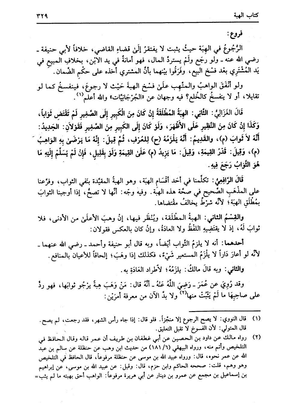 وقد رُوِيَ عن عُمَرَ -رَضِيَ اللهُ عَنْهُ- أنَّهُ قال: مَنْ وَهَبَ هِبةً يرْجُو ثوابَها، فهو ردٌّ على صاحِبِهَا ما لَمْ يَثبُتْ منها (¬2) ولا بدَّ الآن منْ معرفة أمرَيْن: