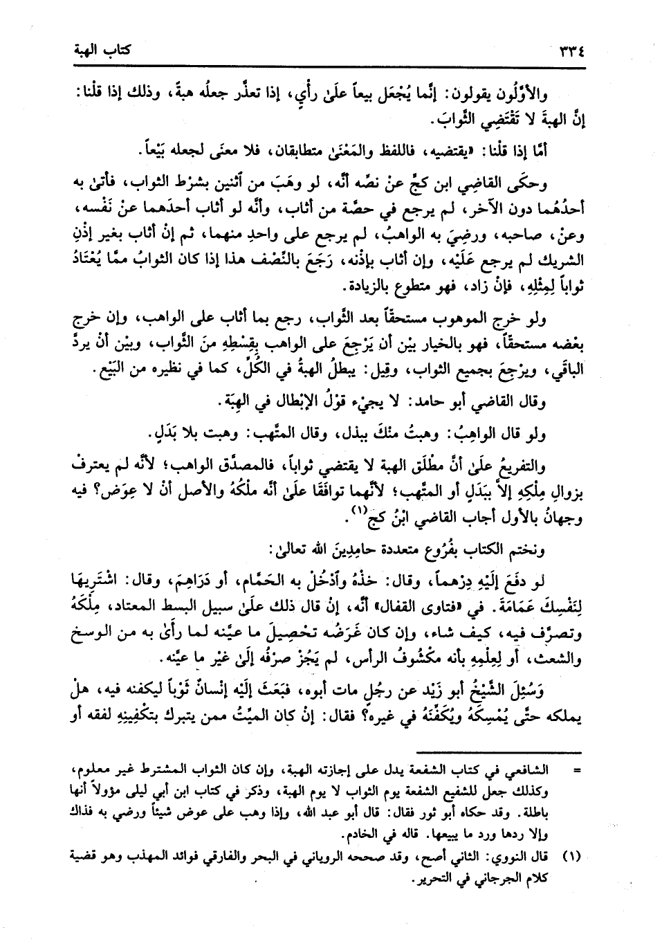 والأوَّلُون يقولون: إنَّما يُجْعَل بيعاً عَلَى رأْيٍ، إذا تعذِّر جعلُه هبةً، وذلك إذا قلْنا: إنَّ الهبةَ لا تَقْتَضِي الثَّوابَ.