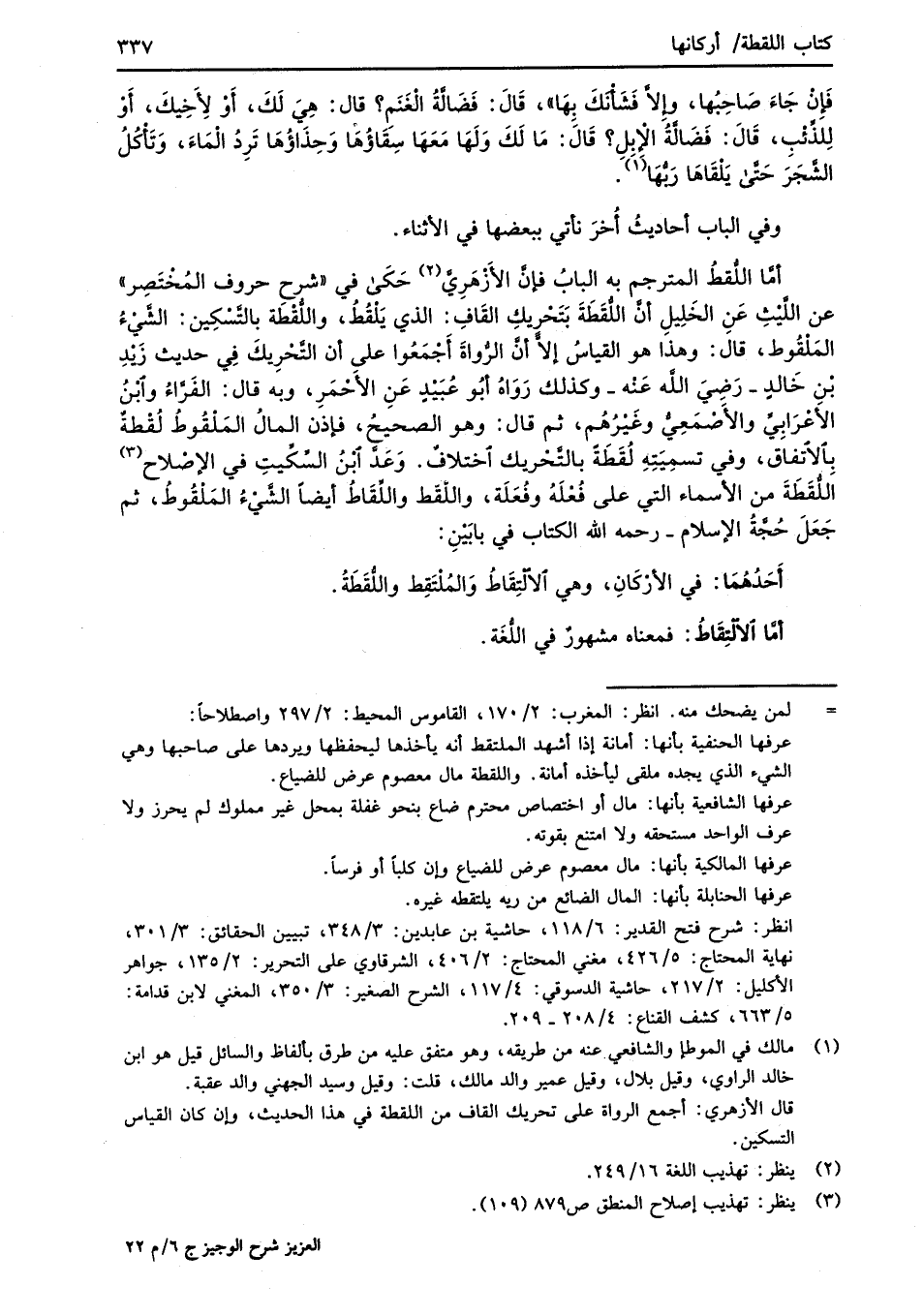 أمَّا اللُّقطُ المترجم به البابُ فإنَّ الأَزْهَرِيَّ (¬2) حَكَى في "شرح حروف المُخْتَصِر" عن اللَّيْثِ عَنِ الخَلِيلِ أن اللُّقَطَةَ بَتَحْريكِ القَافِ: الذي يَلْقُطُ، واللُّقْطَة بالتَّسْكِين: الشَّيْءُ المَلْقُوط، قال: وهذا هو القياسُ إلاَّ أنَّ الرُّواةَ أَجْمَعُوا على أن التَّحْرِيكَ فِي حديث زَيْدِ بْن خَالدٍ -رَضِيَ الله عَنْه- وكذلك رَوَاهُ أبُو عُبَيْدٍ عَنِ الأَحْمَرِ، وبه قال: الفَرَّاءُ وابْنُ الأَعْرَابِيِّ والأَصْمَعِيُّ وغَيْرُهُم، ثم قال: وهو الصحيحُ، فإذن المالُ المَلْقُوطُ لُقْطةٌ بِالاتفاق، وفي تسمِيَتِهِ لُقَطَةً بالتَّحْريك اختلافٌ. وَعَدَّ ابْنُ السِّكِّيتِ في الإصْلاح (¬3) اللُّقَطَةَ من الأسماء التي على فُعْلَهُ وفُعَلَة، واللّقط واللِّقَاط أيضاً الشَّيْءُ كل المَلْقُوطُ، ثم جَعَلَ حُجَّةُ الإِسلام -رحمه الله الكتاب في بابَيْنِ: