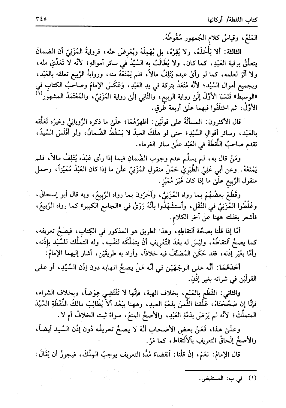 وعلَى هذا، فَعَنْ بعضِ الأصحاب أنَّهُ لا يصحُّ تعريفه دُون إذْن السِّيد أيضاً، والأصحُّ إلْحاقُ التعريفِ بالالتقاط، كما مَرَّ.