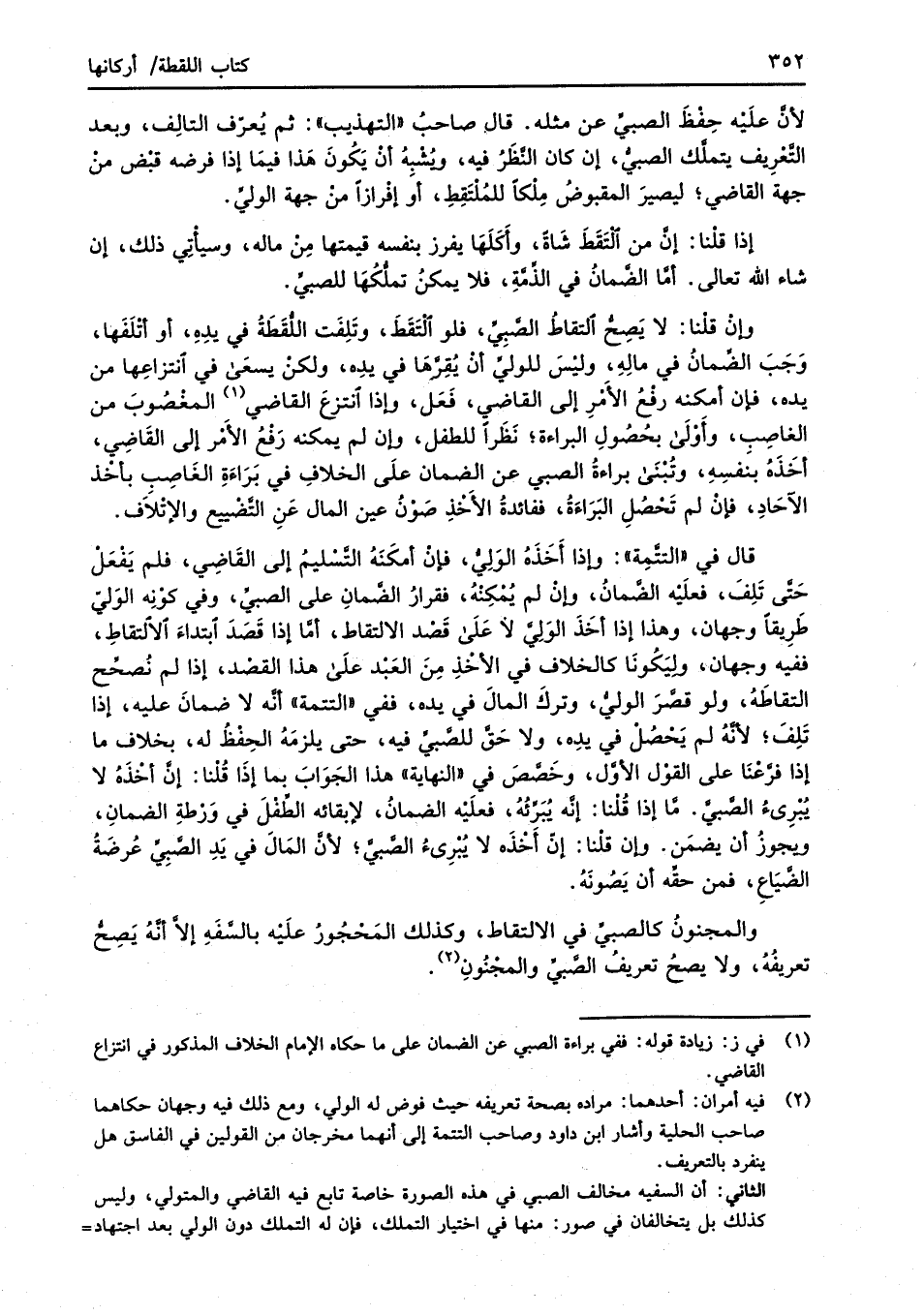 والمجنونُ كالصبيِّ في الالتقاط، وكذلك المَحْجُورُ علَيْه بالسَّفَهِ إلاَّ أنَّهُ يَصِحُّ تعريفُهُ، ولا يصحُ تعريف الصَّبيِّ والمجْنُونِ (¬2).
