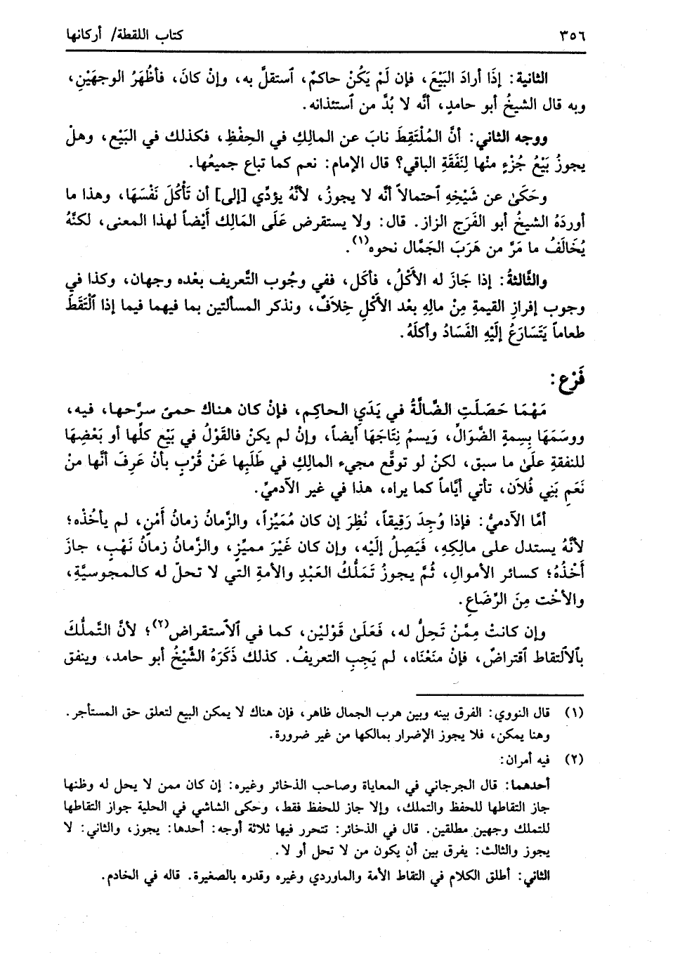 ووجه الثاني: أنَّ المُلْتَقِطَ نابَ عن المالِكِ في الحِفْظِ، فكذلك في البَيْع، وهلْ يجوزُ بَيْعُ جُزْءٍ منْها لِنَفَقَةِ الباقي؟ قال الإمام: نعم كما تباع جميعُها.