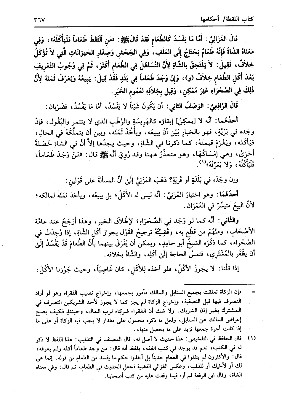 (¬1) قال الحافظ في التلخيص: هذا حديث لا أصل له، قال المصنف في التذنيب: هذا اللفظ لا ذكر له في الكتب، نعم قد يوجد في كتب الفقه، بلفظ أنه قال: من وجد طعاماً أكله ولم يعرفه، قال: والأكثرون لم ينقلوا في الطعام حديثاً بل أخذوا حكم ما يفسد من الطعام من قوله: إنما هي لك أو لأخيك أو للذئب، وعكس الغزالي القضية فجعل الحديث في الطعام، ثم قال: وفي معناه الشاة، وقال ابن الرفعة لم أره فيما وقفت عليه من كتب أصحابنا.