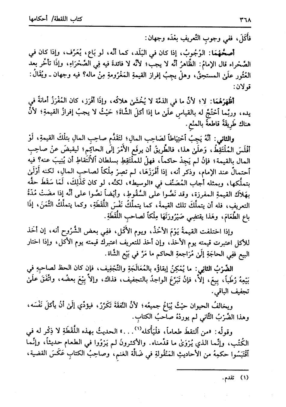 وقولُه: "من التقطَ طعاماً، فلْيَأْكله (¬1) ... " الحديثُ بهذه اللُّقَطَةِ لا ذِكْر له في الكُتُب، وإنَّما الذي يُرْوَى ما قدَّمناه. والأكثرونَ لم يَرْوُوا في الطعام حديثاً، وإنَّما اقْتَبَسُوا حكمِهُ من الأحاديثِ المَنْقُولةِ في ضَالَّة الغنمِ، وصاحِبُ الكتابِ عَكَسَ القضية،