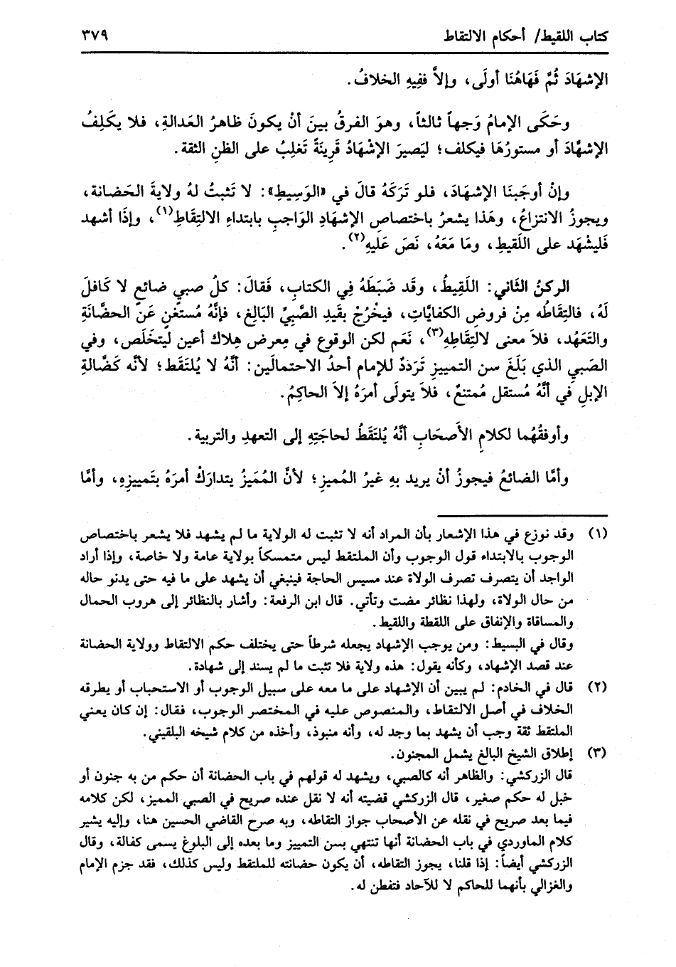 وقال في البسيط: ومن بوجب الإشهاد يجعله شرطاً حتى يختلف حكم الالتقاط وولاية الحضانة عند قصد الإشهاد، وكأنه يقول: هذه ولاية فلا تثبت ما لم يسند إلى شهادة.