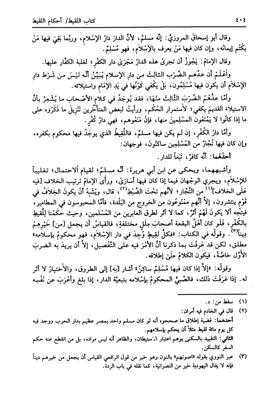 وأعْلَمْ أن عدَّهم الضَّرْب الثالِثَ من دارِ الإِسلام يُبَيِّنُ أنَّه ليْسَ من شَرْط دارِ الإسْلاَم أن يكون فيها مُسْلِمُون، بَلْ يكْفي كَوْنُها في يَدِ الإمَامِ واستيلائه.