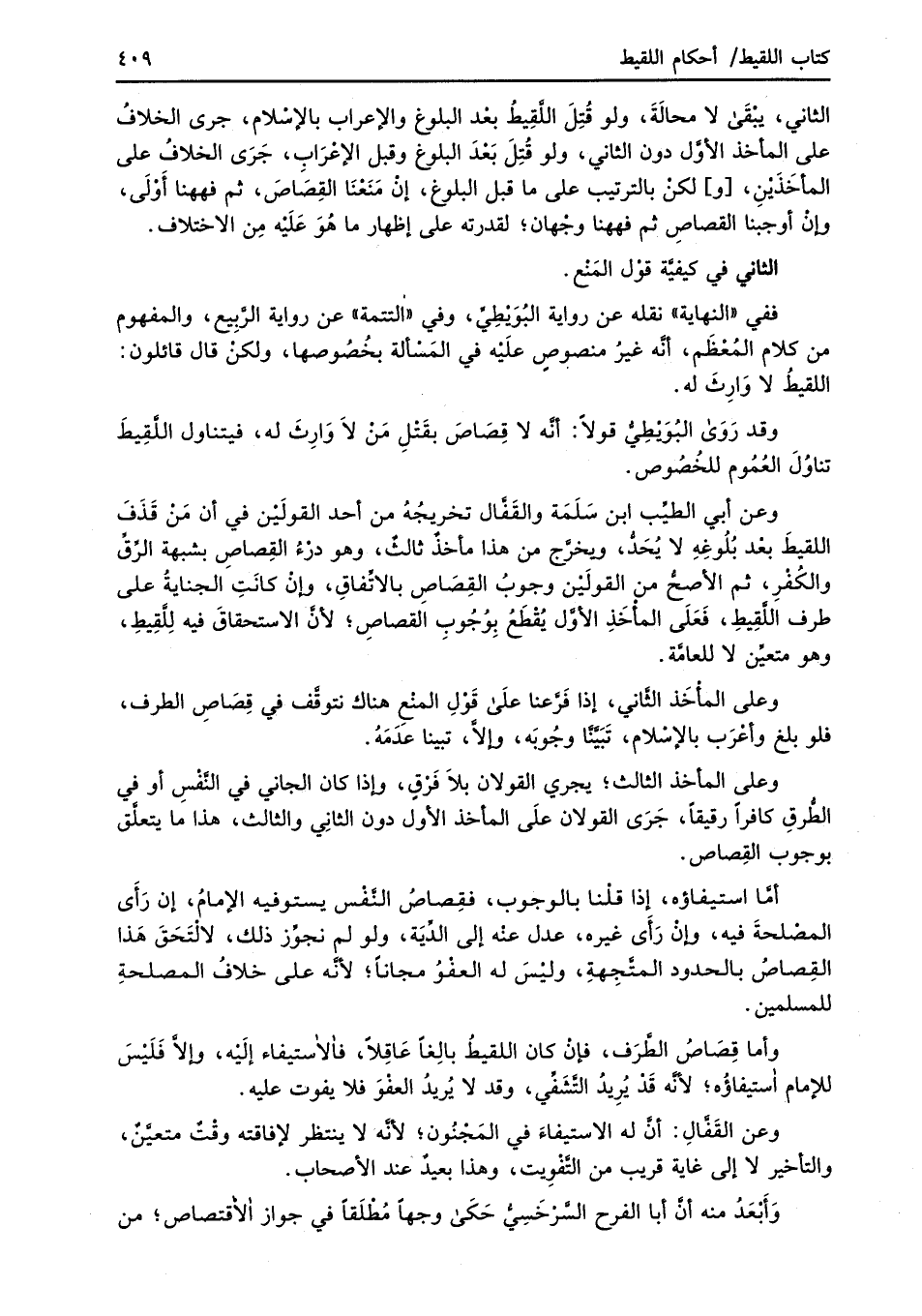 الثاني، يبْقَى لا محالَةَ، ولو قُتِلَ اللَّقِيطُ بعْد البلوغ والإعراب بالإسْلام، جرى الخلافُ على المأخذ الأوَّل دون الثاني، ولو قُتِلَ بَعْدَ البلوغ وقبل الإعْرَاب، جَرَى الخلافُ على المأخَذَيْنِ، [و] لكنْ بالترتيب على ما قبل البلوغ، إنْ مَنَعْنَا القِصَاصَ، ثم فههنا أَوْلَى، وإنْ أوجبنا القصاصِ ثم فههنا وجْهان؛ لقدرته على إظهار ما هُوَ عَلَيْه مِن الاختلاف.