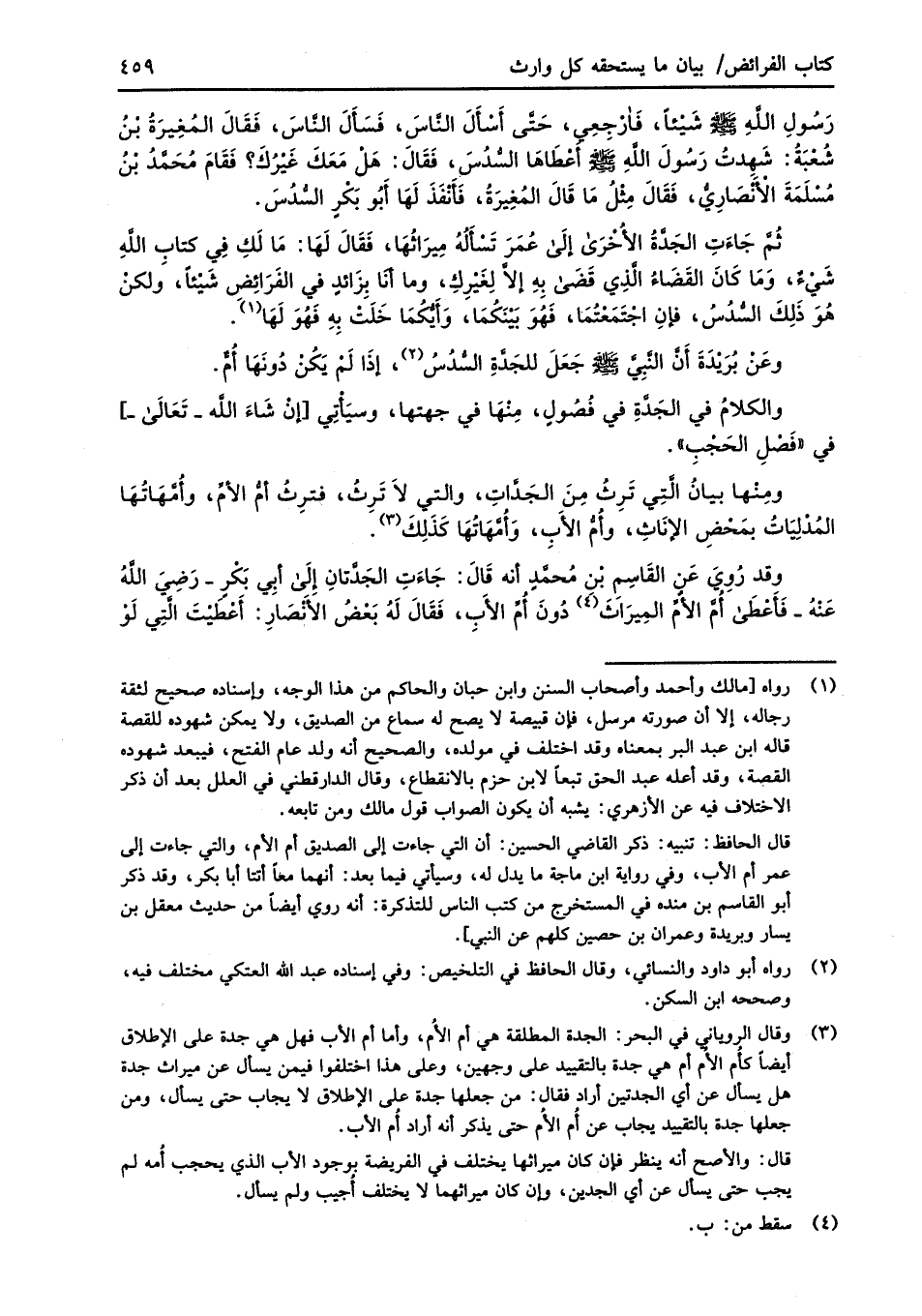 ومِنْها بيانُ الَّتي تَرِثُ مِنَ الجَدَّاتِ، والتي لاَ تَرِثُ، فترِث أمُّ الأمِّ، وأمَّهَاتُهَا المُدْلِياتُ بمَحْضِ الإنَاثِ، وأُمُّ الأَبِ، وَأمَّهَاتُها كَذَلِكَ (¬3).