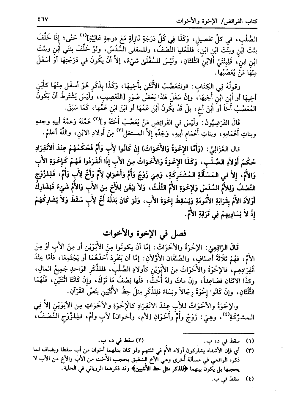 قَالَ الفَرَضِيُّونَ: ولَيْسَ في الفَرائِضِ منْ يُعَصِّبُ أُخْتَهُ و] (¬2) عَمَّتَهُ وَعمَّةَ أبيهِ وجدهِ وبناتِ أَعْمَامِهِ، وبناتِ أَعْمَامِ أبيهِ، وَجَدِّهِ إِلاَّ المستغل (¬3) منْ أَولادِ الابْنِ، واللهُ أعلمُ.