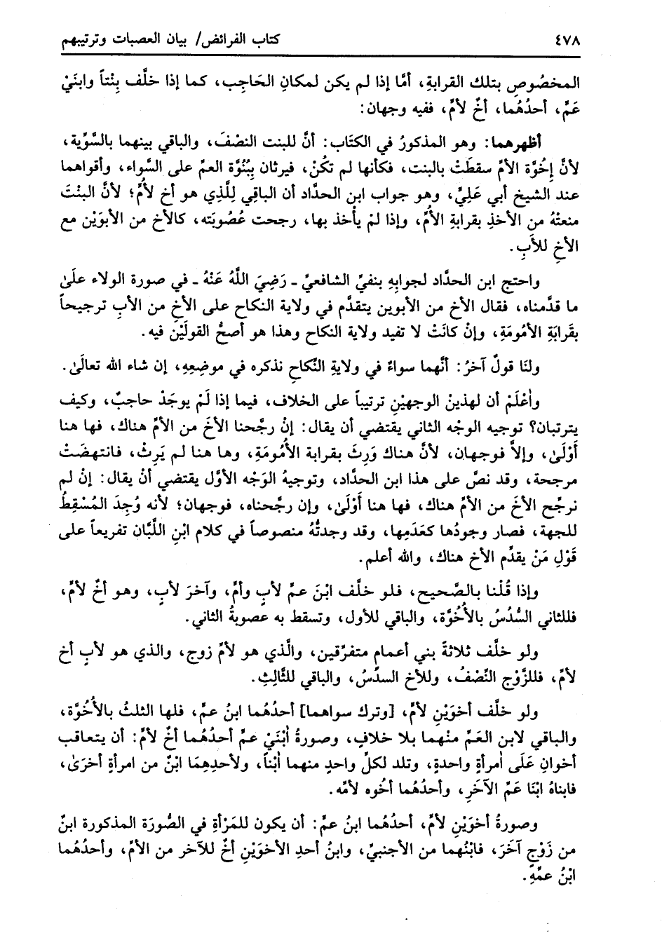 واحتج ابن الحدَّاد لجوابِهِ بنفيِّ الشافعيِّ -رَضِيَ اللهُ عَنْهُ- في صورة الولاء عَلَى ما قدَّمناه، فقال الأخ من الأبوين يتقدَّم في ولاية النكاح على الأخ من الأبِ ترجيحاً بقَرابَةِ الأمُومَةِ، وإنْ كانَتْ لا تفيد ولاية النكاح وهذا هو أصحُّ القولَيْنَ فيه.