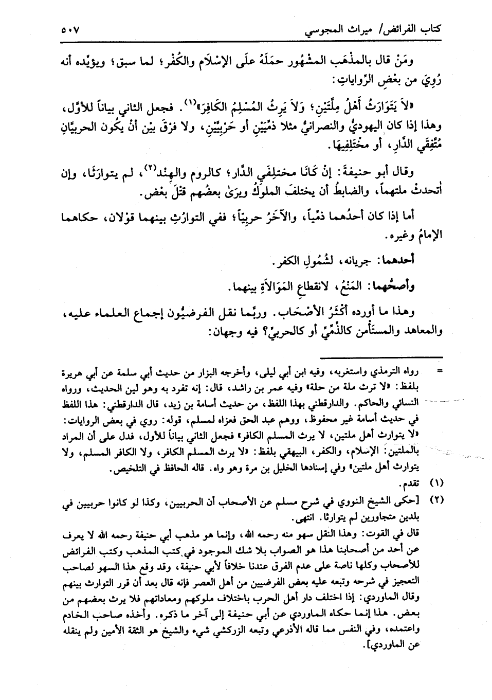 (¬2) [حكى الشيخ النووي في شرح مسلم عن الأصحاب أن الحربيين، وكذا لو كانوا حربيين في بلدين متجاورين لم يتوارثا. انتهى.