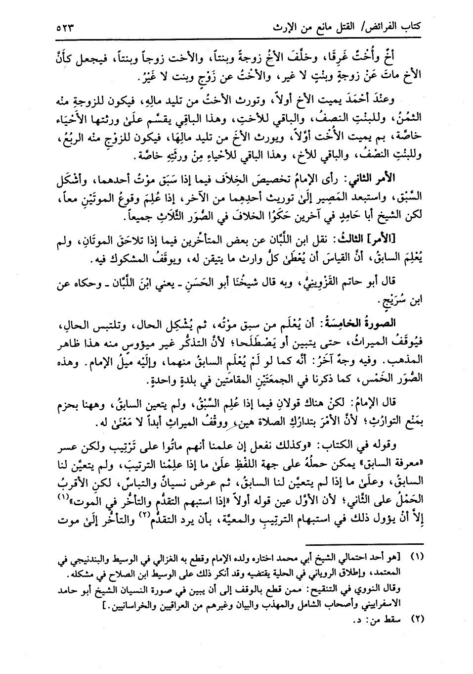 الأمر الثاني: رأى الإمامُ تخصيصَ الخِلاَف فيما إذا سَبَق موْتُ أحدهما، وأشْكَل السَّبْق، واستبعد المَصِير إلَى توريث أحدِهِما من الآخر، إذا عُلِمَ وقوعُ الموتَيْنِ معاً، لكن الشيخ أبا حَامِدٍ في آخرين حَكَوُا الخلافَ في الصُّوَر الثَّلاَثِ جميعاً.