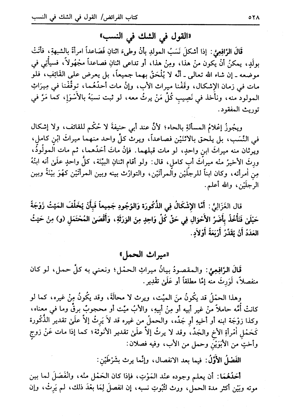 قَالَ الرَّافِعِيُّ: والمقصودُ بيانُ ميراثِ الحمْل؛ ونعني به كلَّ حمل، لو كان منفصلاً، لَوَرِثَ منه إمَّا مطلقاً أو عَلَى تقْدِير.