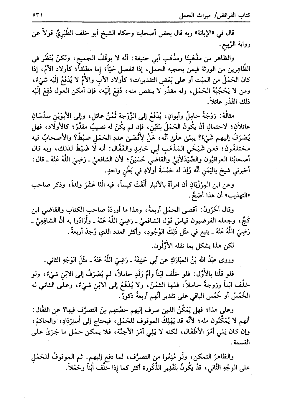 والظاهرُ التمكن، ولَو مُنِعُوا من التصرُّف، لما دفع إليهم. ثم الموقوفُ للحَمْلِ على الوجْهِ الثَّاني، قدْ يكُونُ بتَقْدِير الذُّكُورة أكثر كما إِذا خلَّف ابْناً وحَمْلاً.