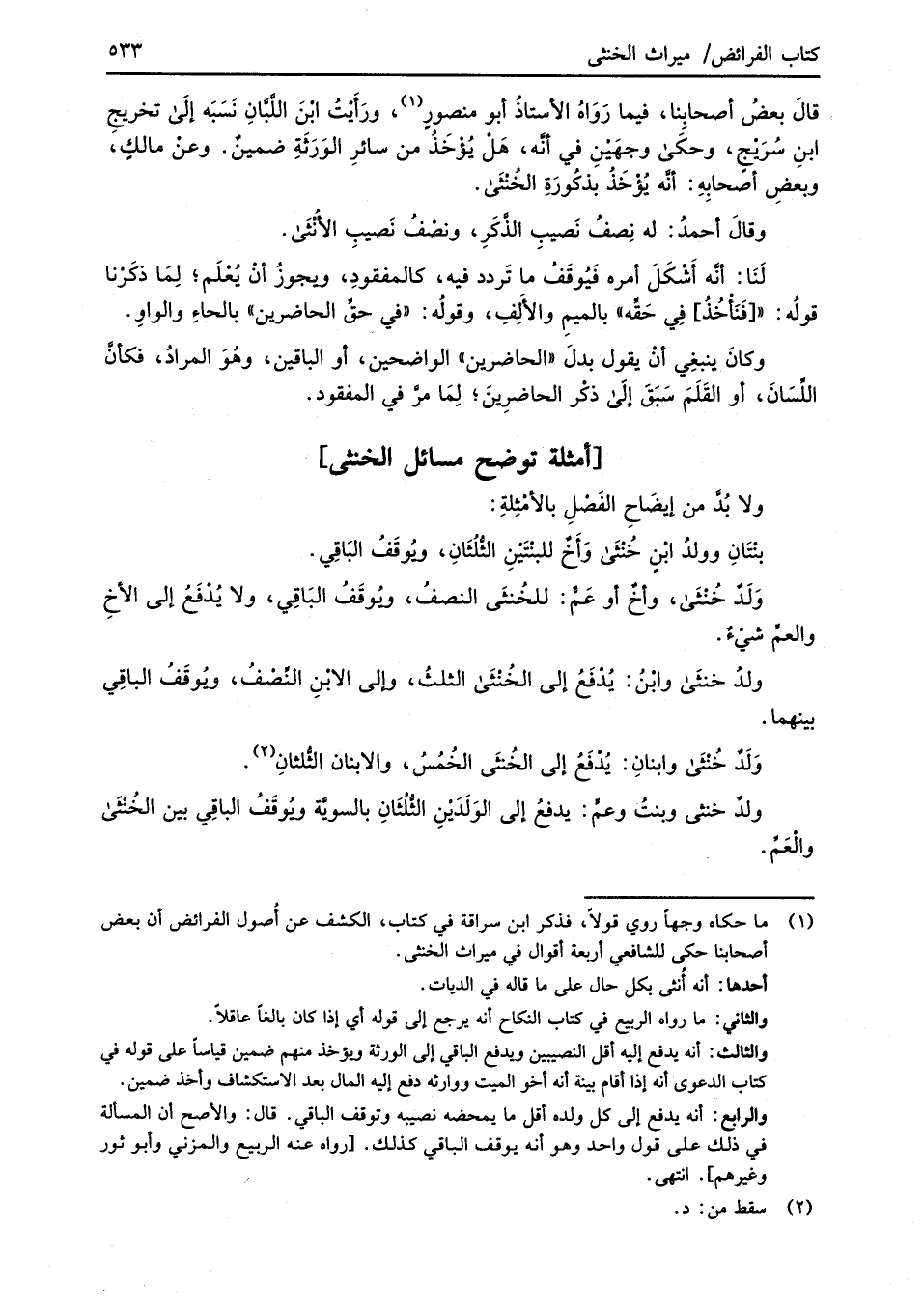 [أمثلة توضح مسائل الخنثى]