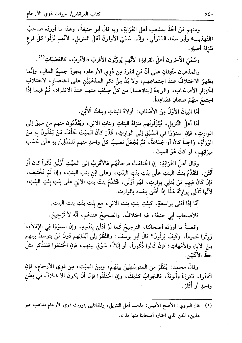 (¬1) قال النووي: الأصح الأقيس: مذهب أهل التنزيل، وللقائلين بتوريث ذوي الأرحام مذاهب غير هذين، لكن الذي اختاره أصحابنا منها هذان.