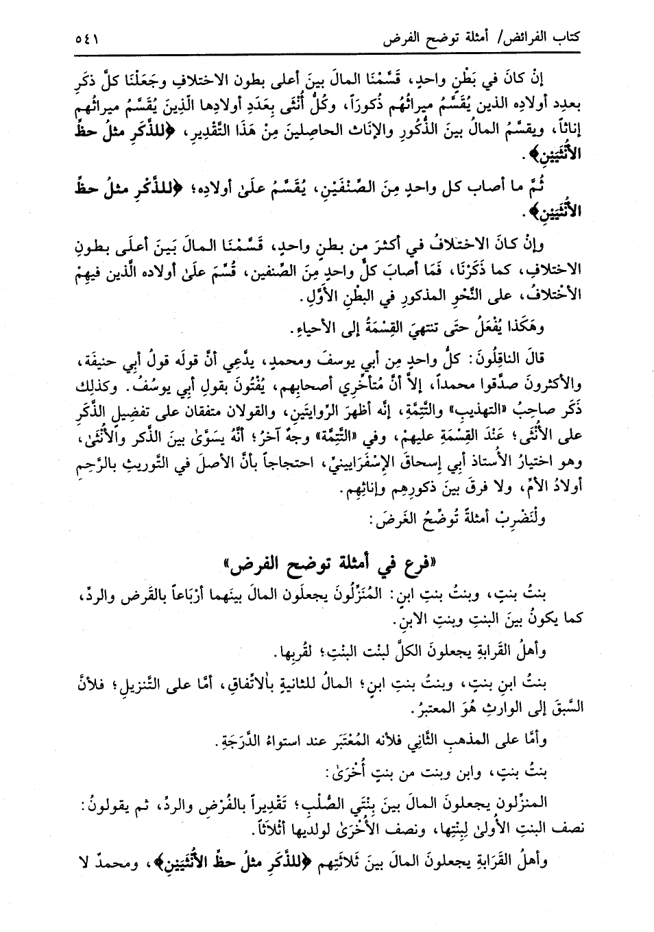 وأهلُ القَرابةِ يجعلونَ الكلَّ لبنْت البنْتِ؛ لقْربِها.