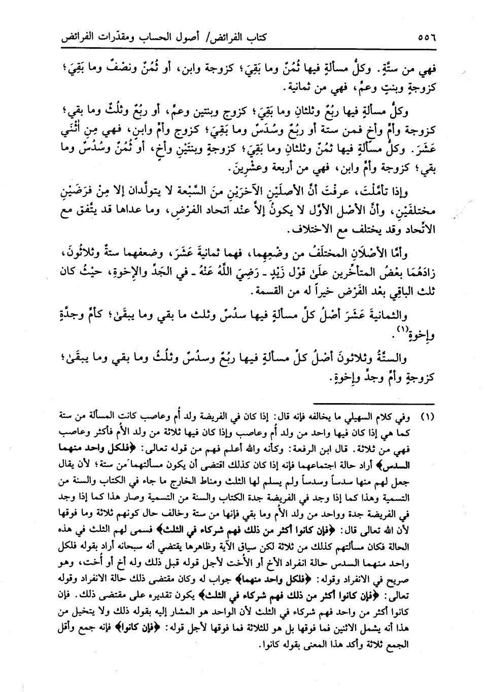والسنَّةُ وثلاثونَ أصْلُ كلِّ مسألةٍ فيها ربُعٌ وسدُسٌ وثلُثُ وما بقي وما يبقَى؛ كزوجةٍ وأمٍّ وجدٍّ وإِخوةٍ.