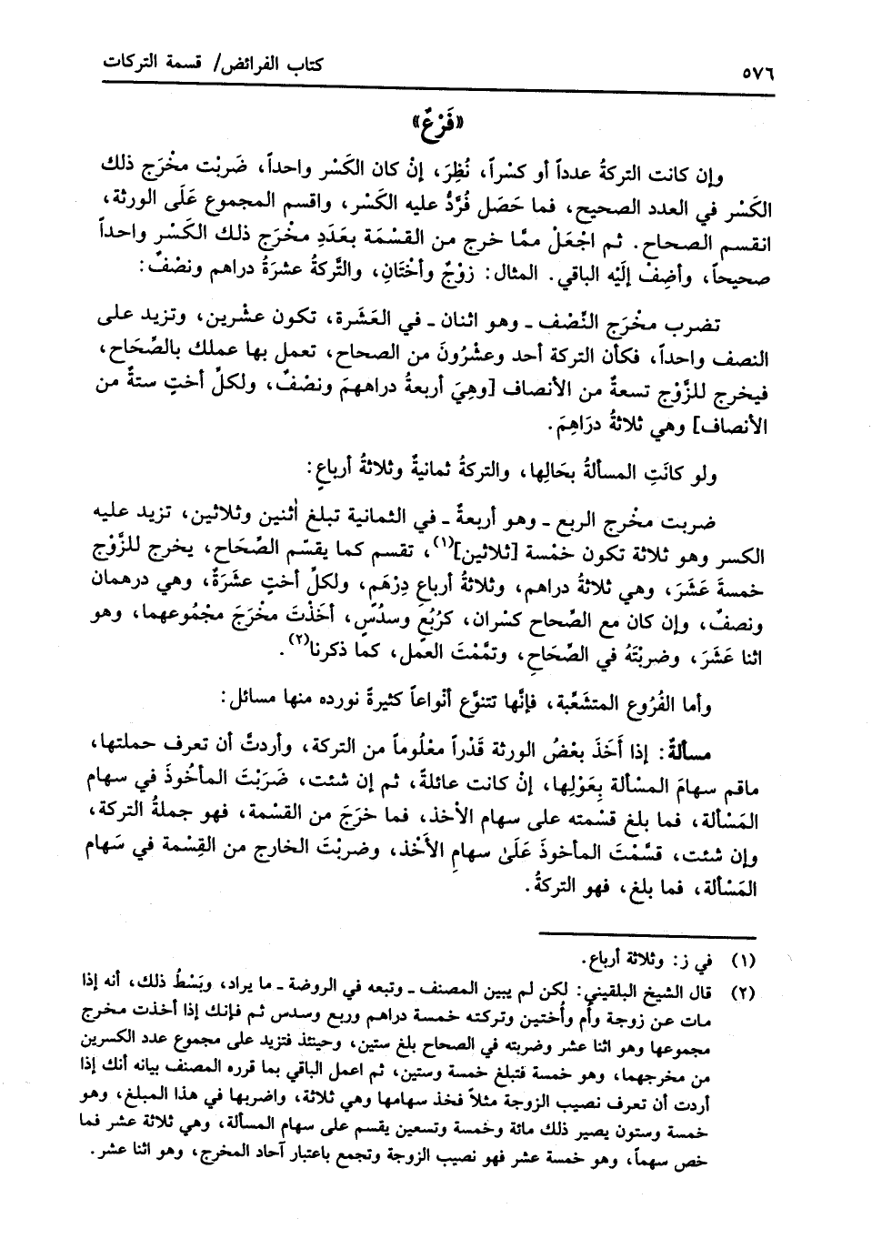 وأما الفُرُوع المتشَعِّبة، فإنَّها تتنوَّع أنْواعاً كثيرةً نورده منها مسائل: