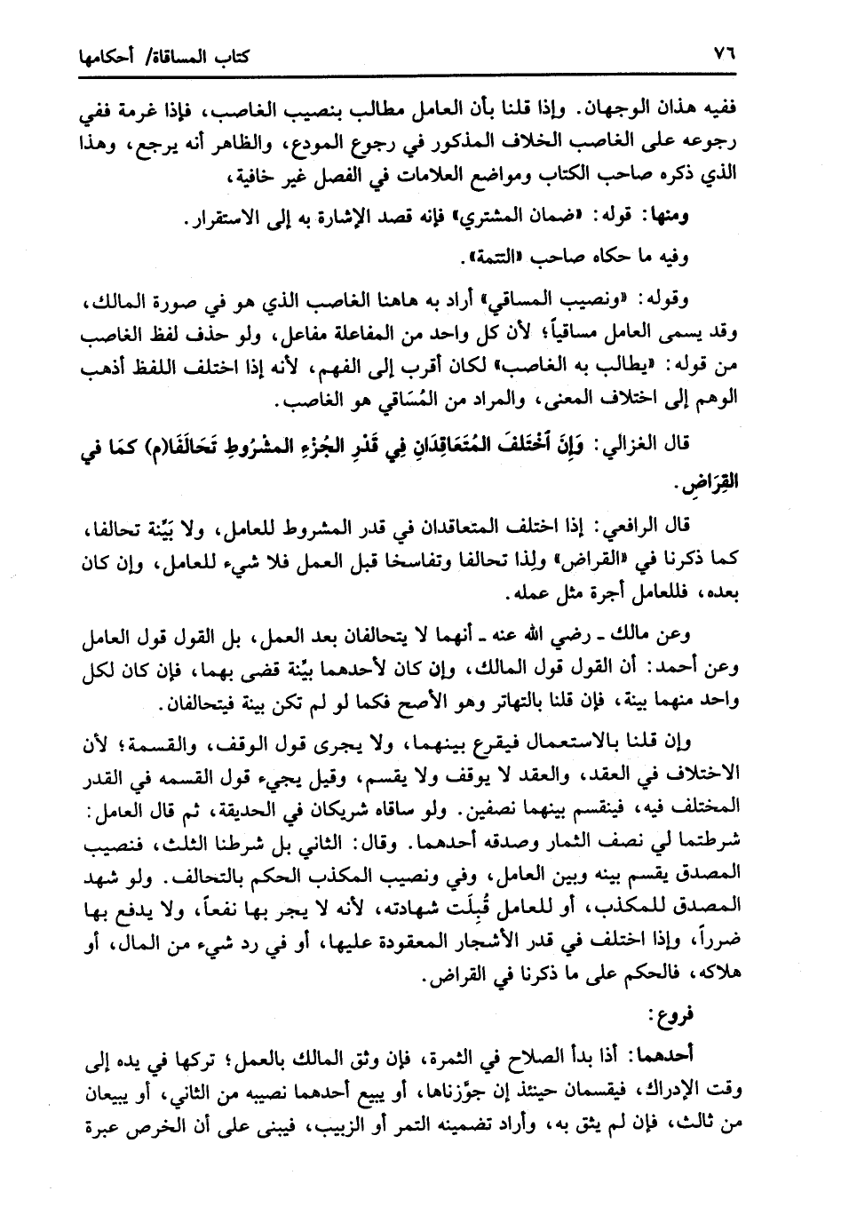 وقوله: "ونصيب المساقي" أراد به هاهنا الغاصب الذي هو في صورة المالك، وقد يسمى العامل مساقياً؛ لأن كل واحد من المفاعلة مفاعل، ولو حذف لفظ الغاصب من قوله: "يطالب به الغاصب" لكان أقرب إلى الفهم؛ لأنه إذا اختلف اللفظ أذهب الوهم إلى اختلاف المعنى، والمراد من المُسَاقي هو الغاصب.