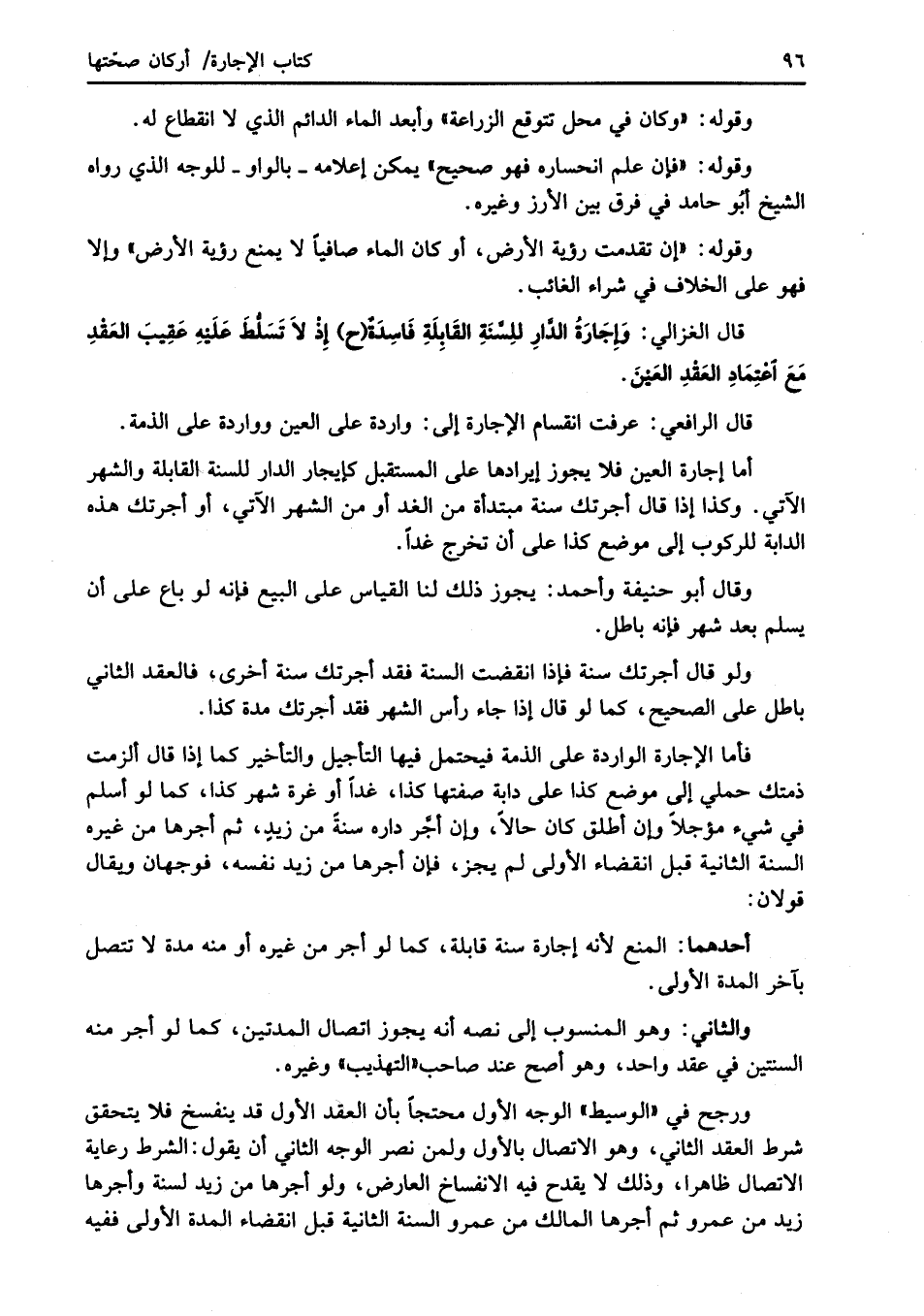 قال الغزالي: وَإِجَارَةُ الدَّارِ للِسَّنَةِ القَابِلَةِ فَاسِدَةٌ (ح) إذْ لاَ تَسَلُّطَ عَلَيْهِ عَقِيبَ العَقْدِ مَعَ اعْتِمَادِ العَقْدِ العَيْنَ.