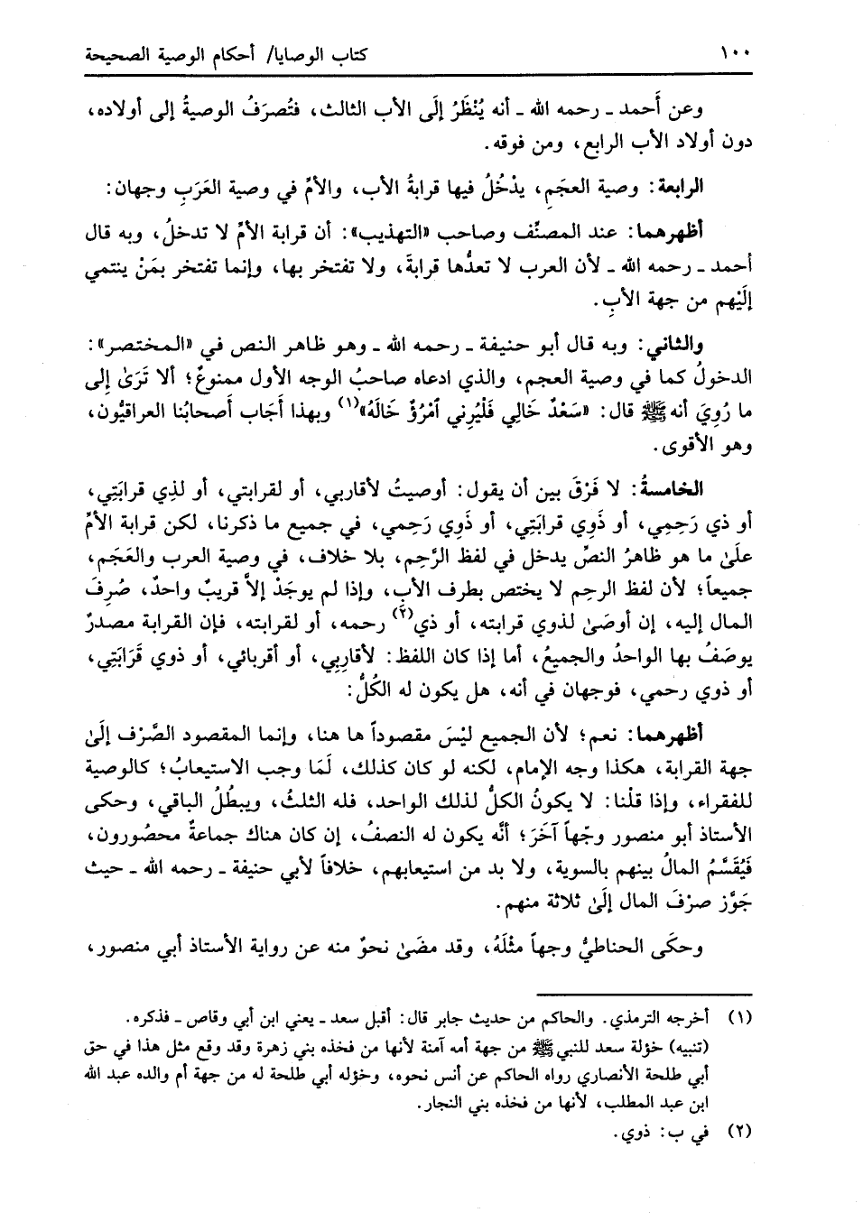 الرابعة: وصية العجَمِ، يدْخُلُ فيها قرابةُ الأب، والأمِّ في وصية العَرَبِ وجهان: