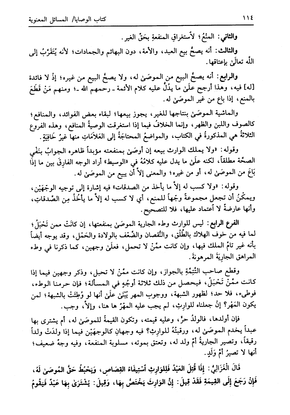 والماشية الموصَى بنتاجها للغير، يجوز بيعها؛ لبقاء بعض الفوائد، والمنافع؛ كالصوف واللبن والظهر، وإنما الخلافُ فيما إذا استغرقت الوصيةُ المنافع، وهذه الفروع الثلاثةُ هي المذكورةُ في الكتاب، والمواضعُ المحتاجَةُ إلى العَلاَمَاتِ منها غيرُ خَافِيَةٍ.