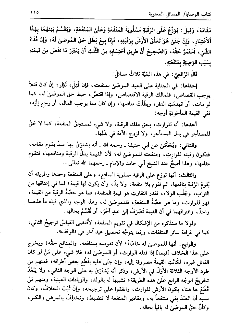 قَالَ الرَّافِعِيُّ: في هذه البقيَّة ثلاثُ مسائلَ: