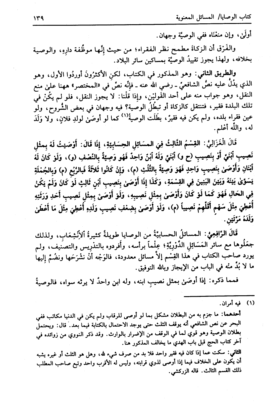 قَالَ الرَّافِعِيُّ: المسائلُ الحسابيَّةُ من الوصايا طويلةٌ كثيرةُ الاِنْشِعَاب، ولذلك جعَلُوها مع سائر المَسَائِلِ الدَّوْرِيَّةِ؛ عِلْمًا برأسه، وأَفردوه بالتدْرِيس والتصنيف، ولم يورد صاحب الكتاب في هذا القِسْم إلاَّ مسائل معدودة، فالوَجْه أنْ نشْرَحَها ونضُمَّ إِليها ما لا بُدَّ منْه في الباب من الإيجاز وبالله التوفيق.