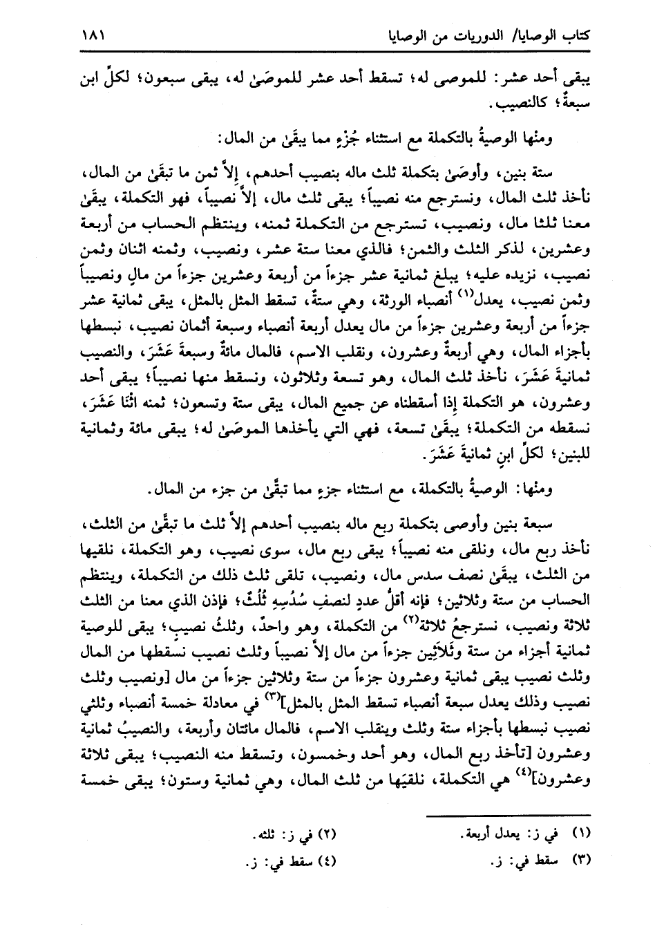 ومنْها الوصيةُ بالتكملة مع استثناء جُزْءٍ مما يبقَى من المال: