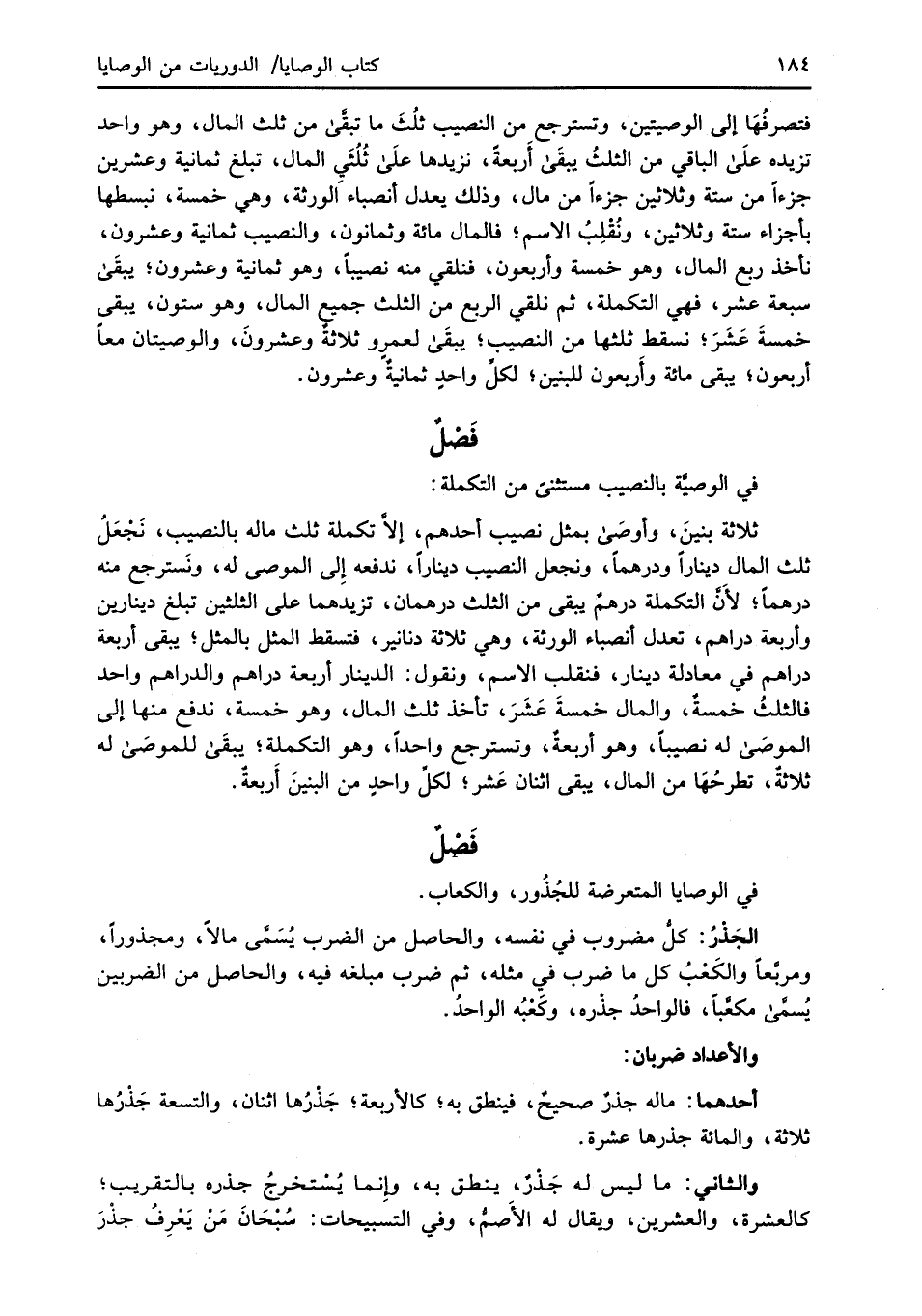 في الوصايا المتعرضة للجُذُور، والكعاب.